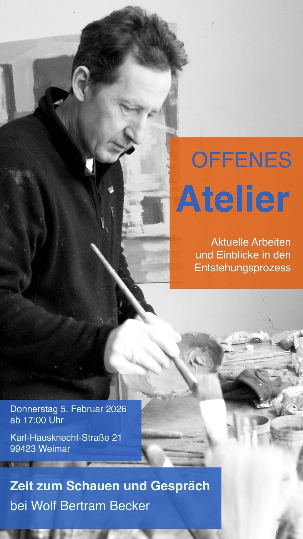 Morgen, Donnerstag, den 5. Februar 2026 ab 17:00 Uhr, Atelier Karl-Haußknecht-Straße 21, Weimar